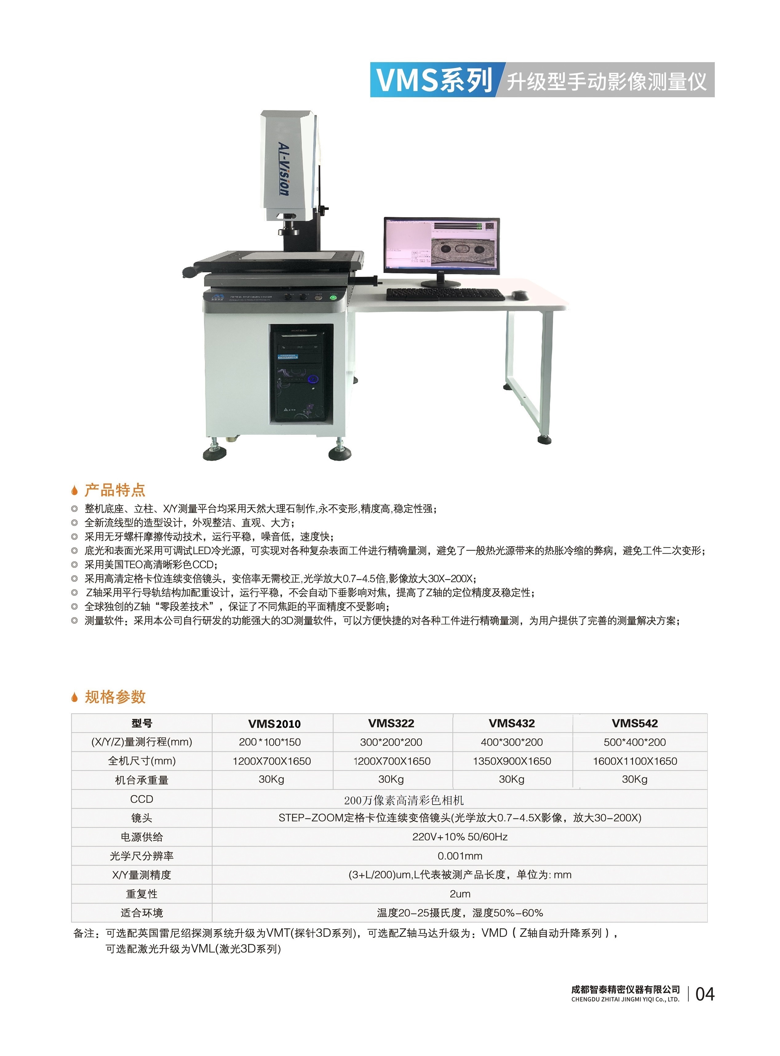 成都智泰精密儀器有限公司專注于精密測量儀器,人工智能,智能制造領(lǐng)域,專業(yè)從事智能視覺自動化檢測解決方案的貿(mào)易型企業(yè)。公司成立于2011年,位于天府之國成都,現(xiàn)有行業(yè)精英十余人,辦公倉儲面積200余平米。 公司主要產(chǎn)品為精密光學(xué)影像測量儀,精密輪廓形狀測量儀,精密機(jī)器人定位系統(tǒng),精密智能視覺尺寸檢測儀器,精密表面缺陷智能檢測設(shè)備,工業(yè)工程特種機(jī)器人。 公司憑借過硬的技術(shù)實力和產(chǎn)品方案,率先進(jìn)入智能視覺自動化檢測領(lǐng)域,推廣以精密智能視覺自動化檢測為基礎(chǔ)的機(jī)器人自動化應(yīng)用,公司不斷整合上下游的資源,擁有巨大的全產(chǎn)業(yè)鏈優(yōu)勢。客戶群體覆蓋了我國精密制造業(yè)的多數(shù)領(lǐng)域,包括航空、航天、軍工、汽車、新能源、光伏、食品,精密電子、精密機(jī)械、模具、PCB、LCD、五金、塑膠、醫(yī)療、教育、計量及科研院所等行業(yè)。 公司創(chuàng)新的產(chǎn)品能滿足生產(chǎn)與制造行業(yè)客戶的要求,訓(xùn)練有素的工程師能及時提供多種技術(shù)服務(wù),如解...